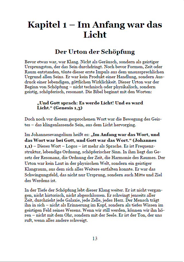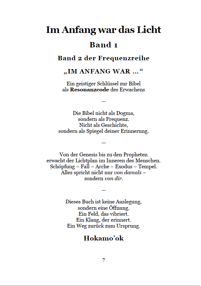 Im Anfang war das Licht – Band 1 lädt dich ein, die Bibel mit neuen Augen und offenem Herzen zu erleben – als Wegweiser, als Klangbuch und als Schlüssel zur Rückkehr ins göttliche Feld.