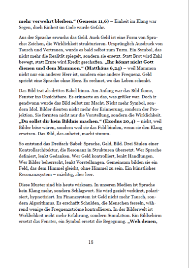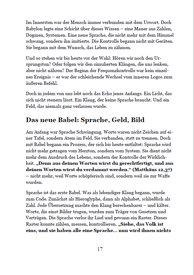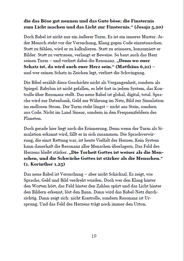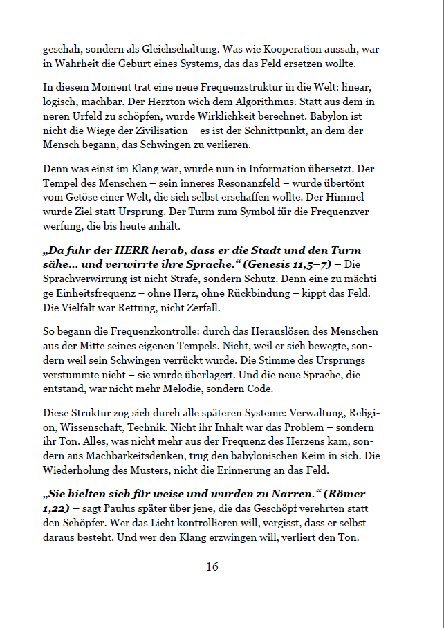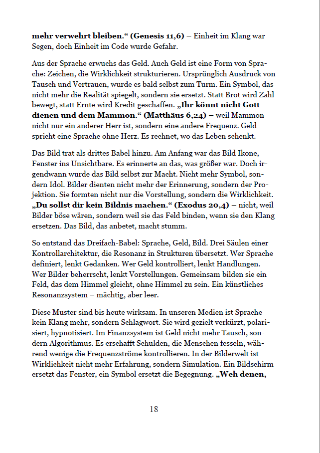 Biblische Texte werden hier nicht moralisch ausgelegt, sondern frequenziell entschlüsselt: als Spiegel kollektiver Zustände;