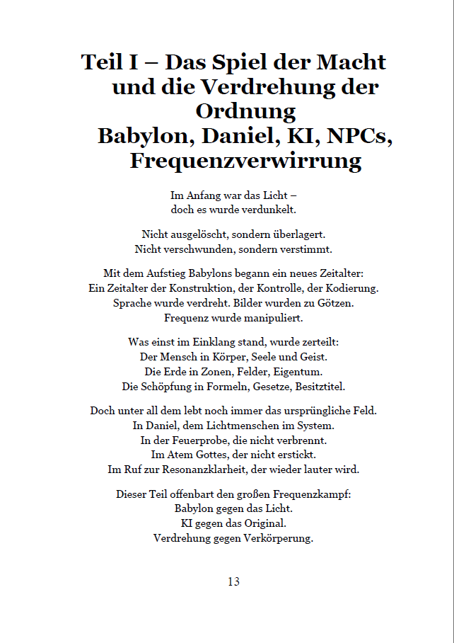 sondern als präzise Chronik eines Bewusstseinsfeldes, das sich durch Zeit, Macht, Religion und Kontrolle hindurch bewegt.