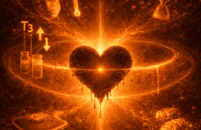 Der Körper versucht weiterhin, Stoffe zu transportieren und Informationen weiterzugeben, doch die Strömung verliert an Geschwindigkeit oder wird lokal blockiert.