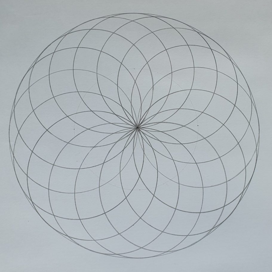 Abbildung 1: 16-Achsen-Vesica-Netz (Überlagerungsprojektion ohne Achsen) – Zentrum wird umlaufen, nicht besetzt
